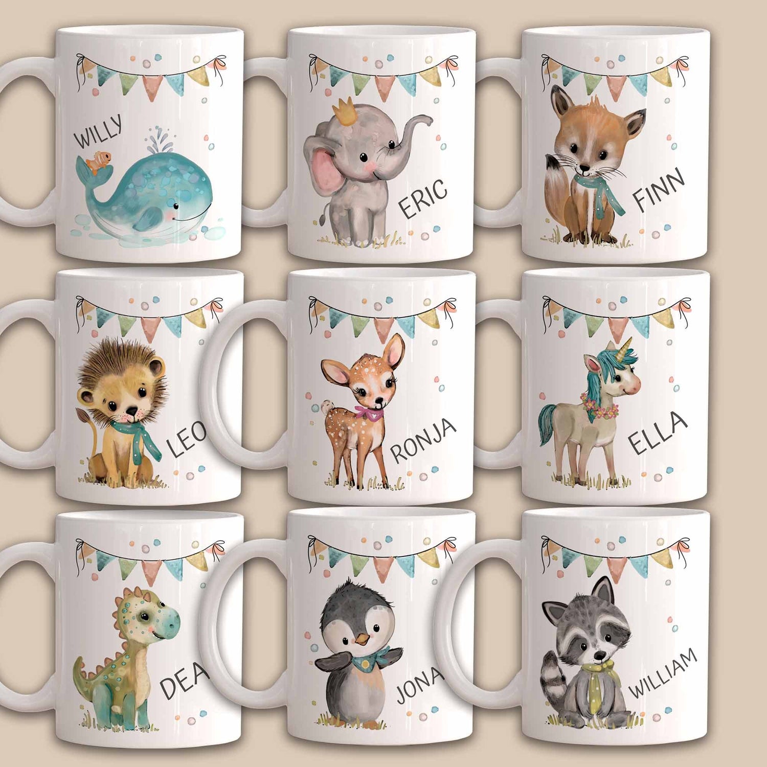 Kinder Tasse Personalisiert - Kindertasse Reh, Dino, Einhorn usw. als Geburtstagsgeschenk, Kinderbecher Kita, Kindergarten Kinder Geschenk