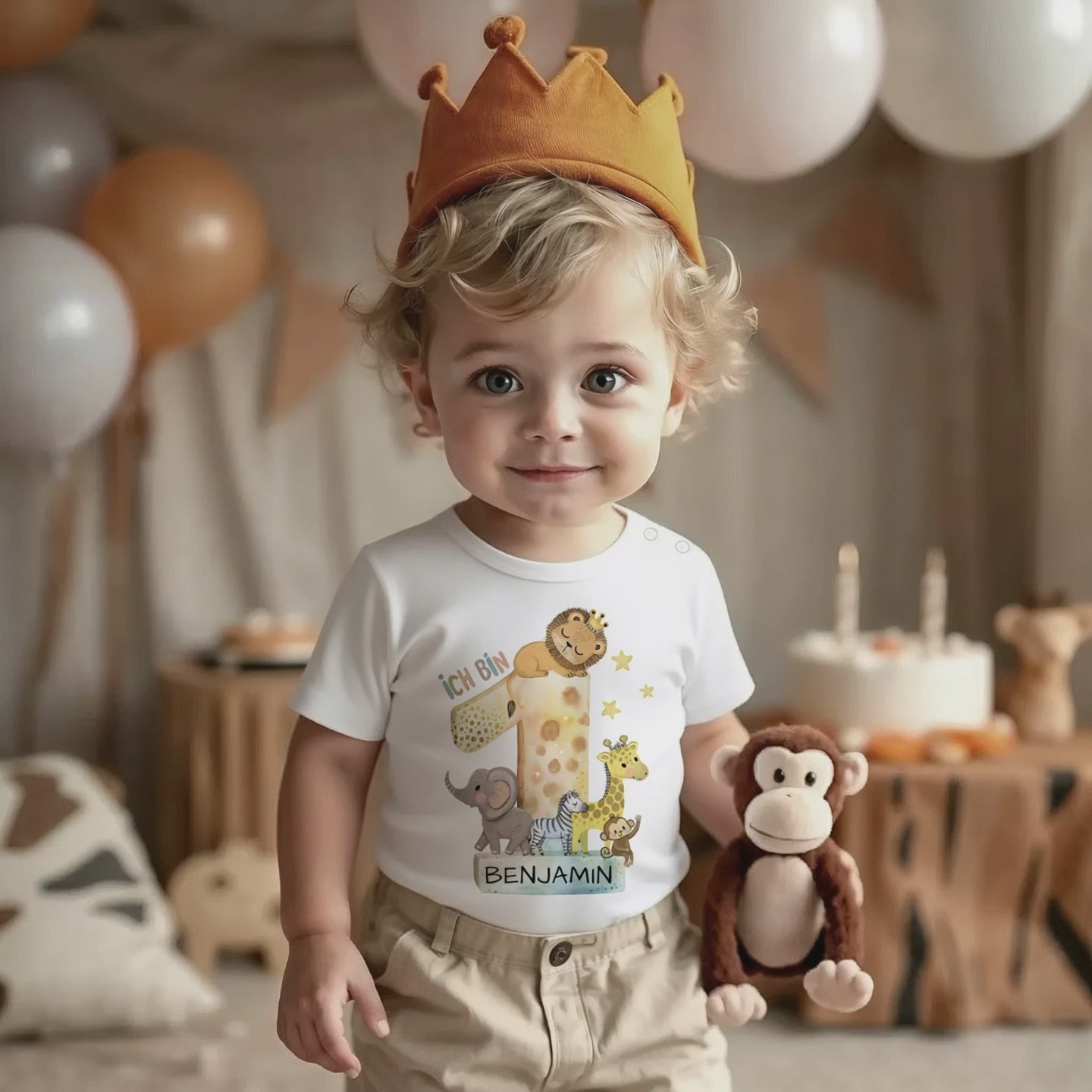 Der erste Geburtstag ist ein riesiges Abenteuer. Und jeder Abenteurer braucht das richtige Outfit! Unser personalisiertes Safari-Shirt ist die perfekte Ergänzung für diesen unvergesslichen Meilenstein.